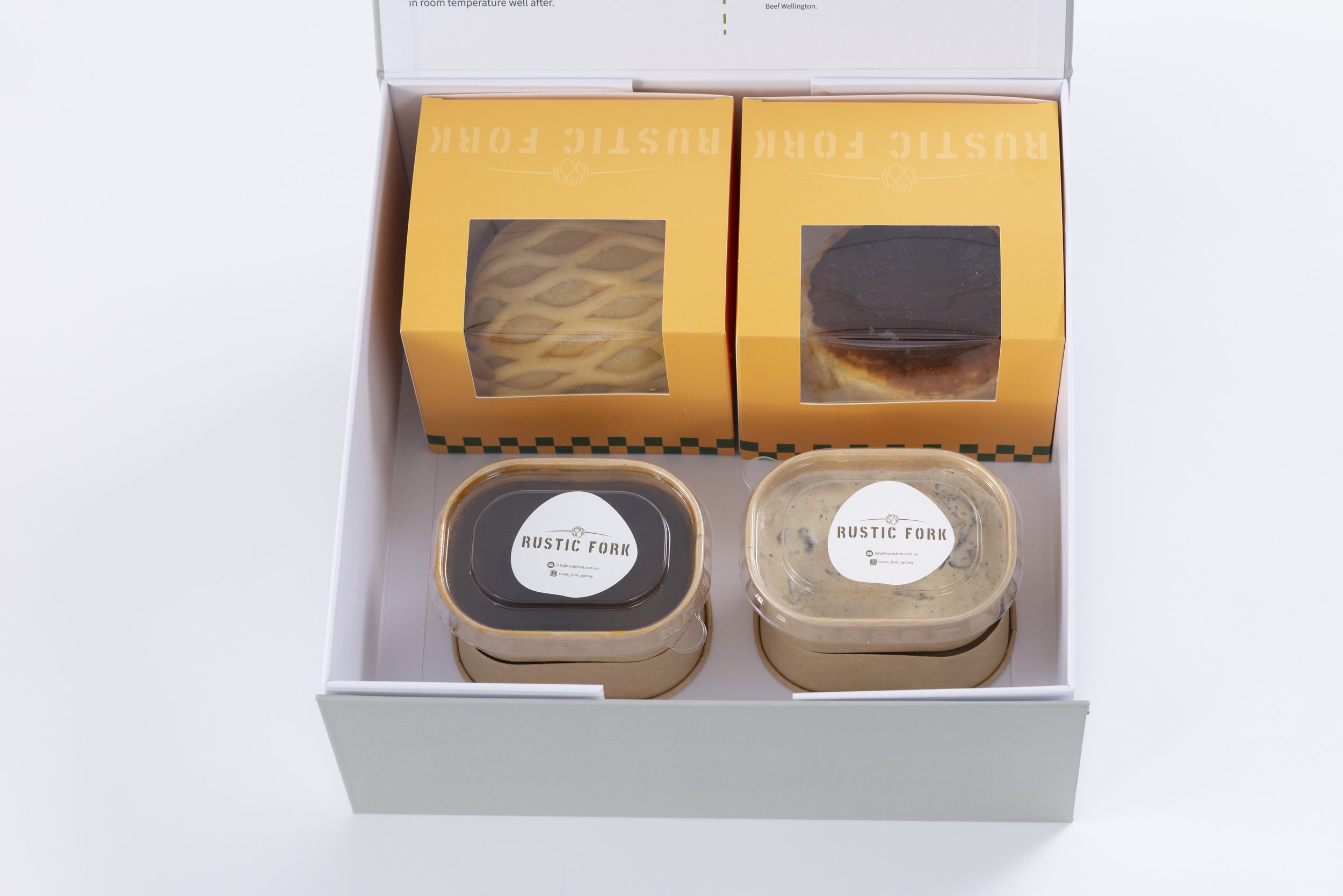 Rustic Fork Signature Box Signature Beef Wellington Confit Duck with Red Wine Jus Chicken and Pork Terrine Wellington Bites Smoked Salmon Bites Basque Cheesecake (GF) Luxe Chocolate Cheesecake (GF) Earl Grey Cheesecake (GF) Matcha Cheesecake (GF) Taro Cheesecake (GF) Black Sesame Cheesecake (GF) Perfect Pairings Rustic Fork Gourmet Hamper Dinner For Two Signature Feast Bundle Gift Card - The Gift of Good Taste Contact usinfo@rusticfork.com.au Home About FAQ Delivery
